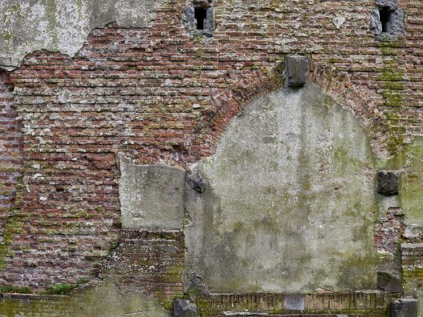 Former passageway in brick wall. Because the passage has been closed off, this wall looks even older.