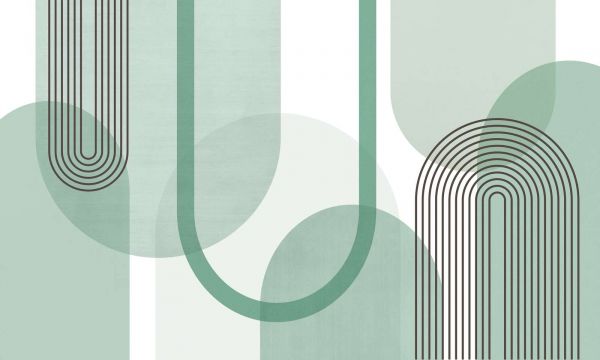 A touch of natural freshness is captured in this mint-green design, which fuses organic shapes and linear motifs. Vertical lines flow seamlessly into soft circles, creating a sense of growth and continuity.