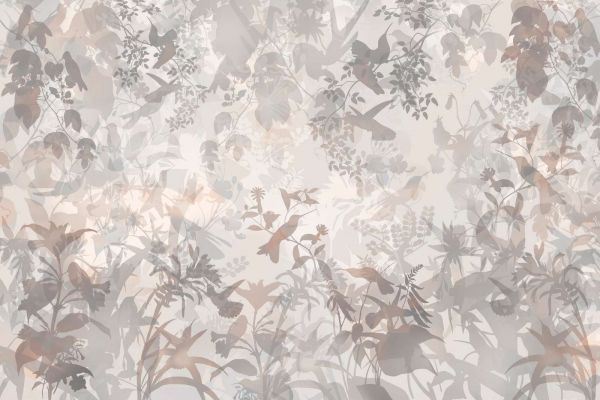 Een verfijnd ontwerp met delicate bloemen en sierlijke vogels, subtiel verweven in een harmonieuze compositie. Het kleurenschema voegt een serene en elegante sfeer toe, perfect voor elke ruimte.