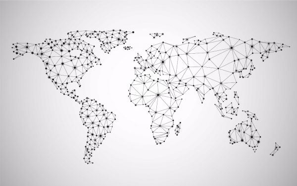 Photo wallpaper with a geometrically shaped world map. This world map is a good addition to your interior.