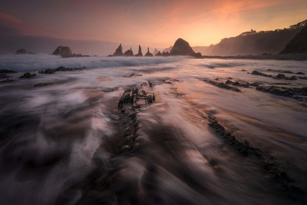Gueirua is a beach in Spain. Here you can see Gueirua at sunset.