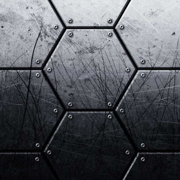 Photo wallpaper of a hexagonal metal plate with rivets. Combine this photo wallpaper in your home.