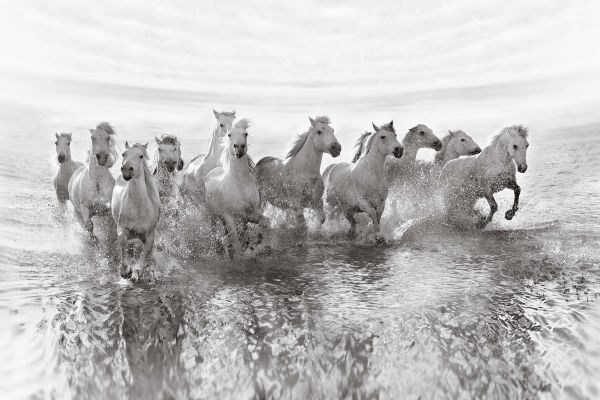 Illusion of power was created by photographer Roman Golubenko. With this photo wallpaper of horses galloping through the sea, the wall is impossible to miss.