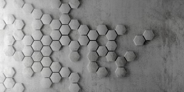 Modern hexagons on concrete. The hexagons have a 3D effect which makes it look like the hexagons are coming out of the wall.