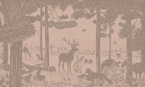 Wallpaper Mural - Monochrome Forest - Pink Vintage