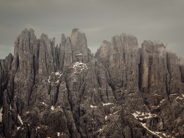Cloudy mountain tops in the north of Italy, the Dolomites. There is a bit of snow on the mountains.
