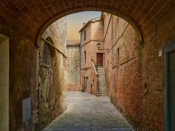 Narrow curved street in Italy. With this photo wallpaper in your home, it is as if you can walk down the street.