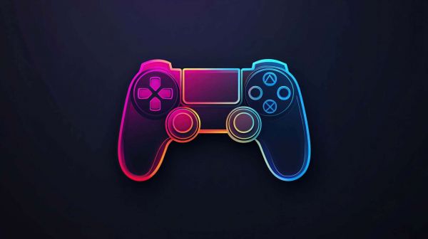 A futuristic design featuring a neon line drawing of a game controller on a dark background. The colorful glow in shades of blue, pink, and purple creates a dynamic and energetic effect, perfect for gamers who want to fill their space with a modern and digital atmosphere.