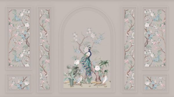 Wallpaper Mural - Peacock Paradise, beige