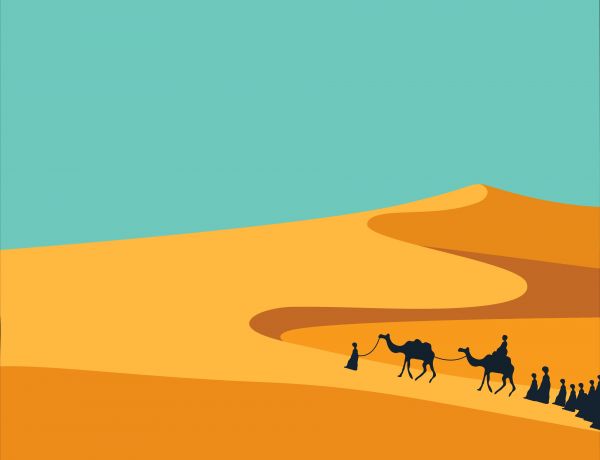 A silhouette of people in the desert. Combine this photo wallpaper in, for example, the children's room.