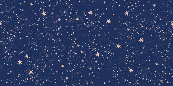A playful starfield of soft-pink stars on a deep night-blue background. The random splatters and twinkling shapes give the design a dreamy, airy look.