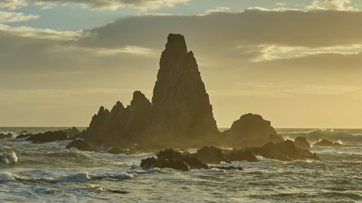 Rough rocks along an undulating coastline