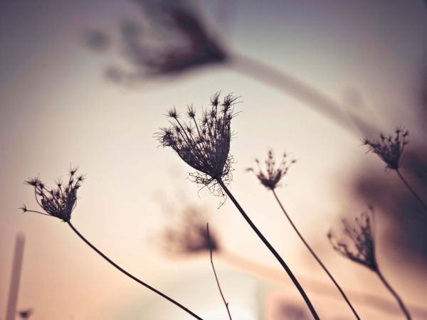A beautiful silhouette of plants in a field where the sun has just gone down.