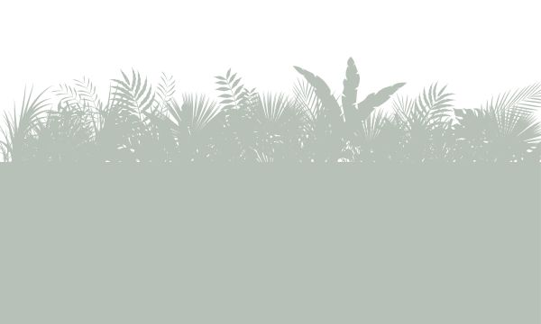Light green background that extends halfway through the print and changes into silhouettes of different tropical leaves.
