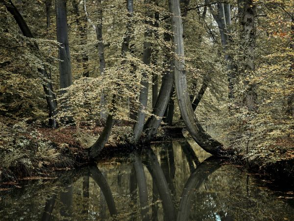 A beautiful stream with unusual trees hanging above the water. Combine this photo wallpaper in the living room, for example.