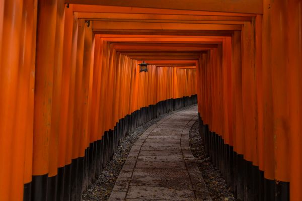 Photo wallpaper of an orange tunnel. Combine it in the living room, for example