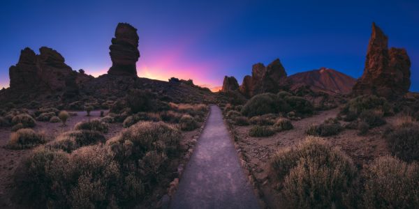 A footpath through a nature reserve in Tenerife. The sun has just set.