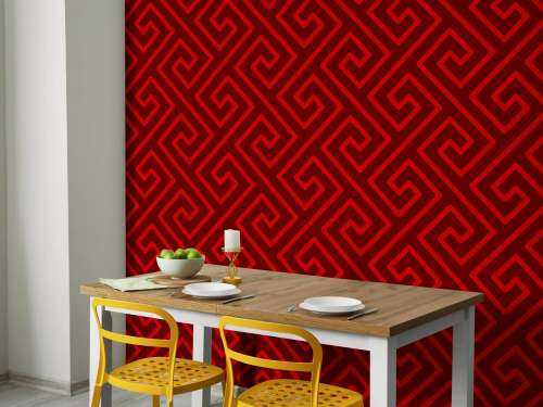 A trendy Chinese pattern with spiral shapes. The red colour on this pattern adds to the atmosphere of the room.