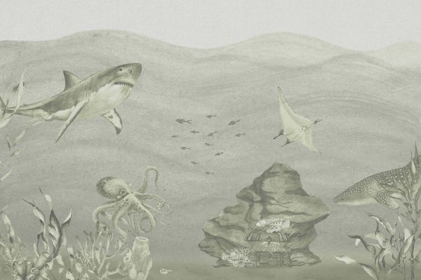 Wallpaper Mural - Underwater world with sharks in green