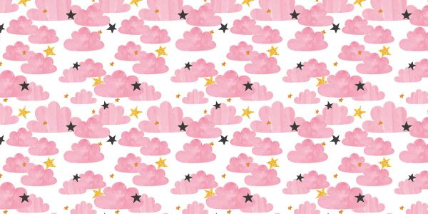 Pattern of pink clouds of watercolour with stars