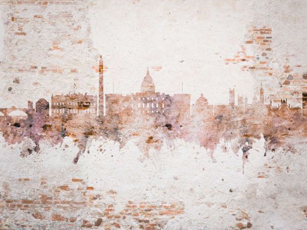 A watercolor skyline of Washington in Urban style. The skyline is available with different backgrounds.