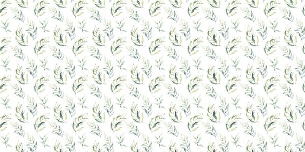 Green photo wallpaper cap a pattern of twigs. The twigs are painted with watercolour.