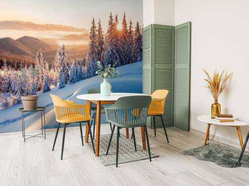 I am happy with my order delivered in a few days. On the other hand, competitors do not charge shipping costs... The chosen photo, snow in the mountains, is as on the screen, beautiful rendering. Very thick paper, good quality. On the other hand, not yet installed, I hope it will not be too heavy: 1 meter wide by 2.4 meters high