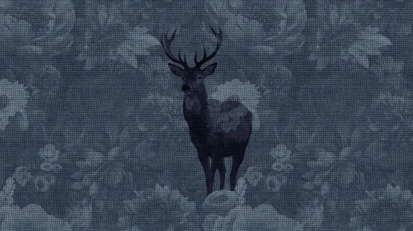 A deer appears as a subtle yet prominent guardian on a canvas of deep blue fabric. Surrounded by the contours of flowers and leaves, this design creates an intriguing illusion of depth and texture, making the deer almost step out of the fabric.