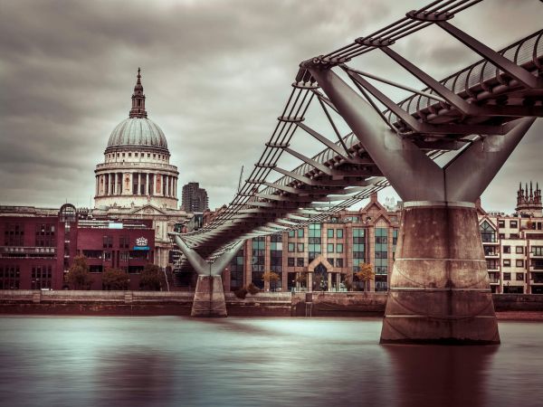 Steel and stone meet in this cityscape where the Millennium Bridge marks the progress that leads to St Paul's Cathedral, an icon of resilience and tradition. The cool tones and clean lines form a harmonious transition between the present and the past.