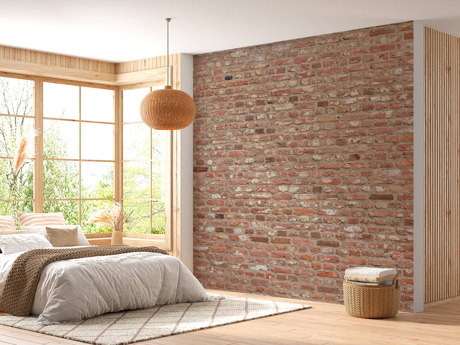 Wall with different coloured bricks. The different colours of bricks make this photo wallpaper even more realistic.