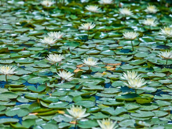 Water lilies in a lake. Combine this photo wallpaper in your home for even more atmosphere.