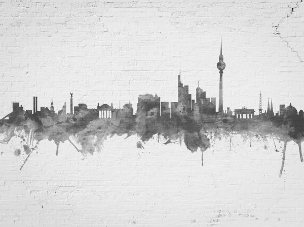 Watercolor skyline, Berlin Peel and Stick Wallpaper