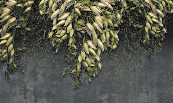 White flower calyxes on a dark gray concrete structure Peel and Stick Wallpaper