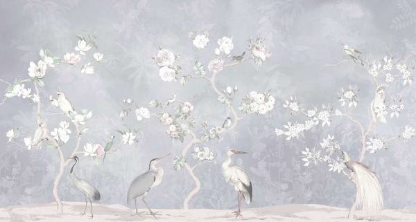 A refined design with delicate blossoms, elegant birds and subtle natural tones. This design radiates peace and harmony, perfect for giving a room a soft, romantic look.