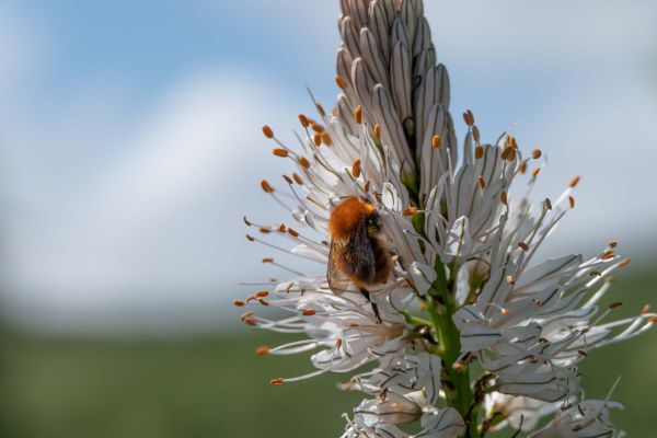 An image of a bumblebee pollinating flowers.