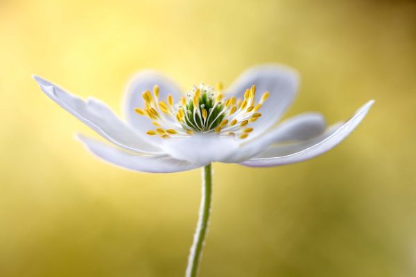 White Wood Anemone on a Yellow Background. Combine this photo wallpaper in your home for even more atmosphere.
