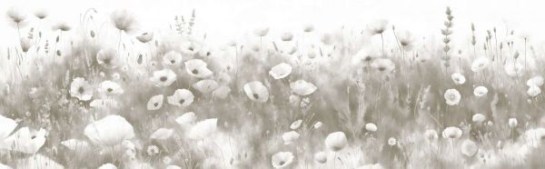 In the Cream version of this flower meadow, the emphasis is placed on warm, light shades that bathe the wall in a soft glow. Poppies, daisies, and fluttering wildflowers are carefully depicted with watercolor strokes in subtle pastel and cream accents. The background has an almost golden sheen, giving the whole a radiant, almost serene character, as if the sun has just risen above the horizon. This variation works particularly well in interiors seeking a balance between tranquility and coziness. Think of a rustic dining room with oak tables, rattan chairs, and neutral linen tablecloths. Optionally, place a vase with freshly picked flowers on the table to bring back the natural charm of the design in the decor. Want to add a modern accent? Go for sleek, white furniture and a few golden accessories, such as a mirror frame or subtle lamp base, to further emphasize the warm cream colors. The soft shades and spacious layout of the composition also make this design very suitable for bedrooms and lounge areas. With light curtains in cotton or linen, you create an oasis of calm, where the morning light can freely enter. The blooming meadow on the wall accentuates the fresh start of each day and invites daydreaming. Wildflower Dance Cream gives your interior a friendly, optimistic appearance and brings the essence of a sunny summer morning indoors. It not only creates atmosphere but also a sense of spaciousness and airiness, making you feel surrounded by the beauty of nature.
