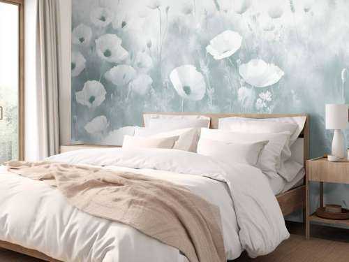 In Dark Green, the flower meadow takes you to a mysterious, almost fairy-tale environment. The background is rich and dark, with shades of moss, pine green, and a hint of midnight blue, making the bright colors of poppies, cornflowers, and other wild bloomers stand out even more. The watercolor technique allows the brushstrokes to subtly blend into each other, creating a muted, mysterious sheen, as if it is just evening light in a hidden garden. This variant is excellent for interiors that want to add a bit more depth and drama. For example, combine it with dark wooden floors, leather armchairs, or velvet sofas in warm shades like ochre or burgundy. This creates a luxurious, intimate atmosphere that perfectly fits a classic or eclectic-chic living style. In a more modern decor, you can add sleek, minimalist furniture and work with gold or brass accents to make the dark green tones shine even more. Wildflower Dance Dark Green is also highly suitable for larger spaces that you want to dress elegantly, such as a spacious living room, dining room, or even a hotel lounge. The design invites calm observation and deepens in the viewer's gaze. With softly muted light or strategically placed spotlights, you can further emphasize the sheen on the flowers, making the wall literally come to life. Whether you choose a classic decor or a modern statement, this dark flower meadow provides a refreshing contrast and an atmosphere that is both soothing and lush. The combination of intense green tones and vibrant flower colors elevates the space to a higher level of style and sophistication.