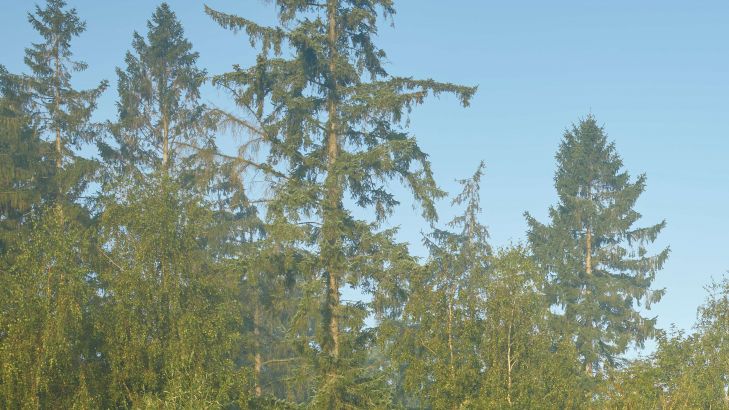 Wooden scaffolding in the forest Peel and Stick Wallpaper